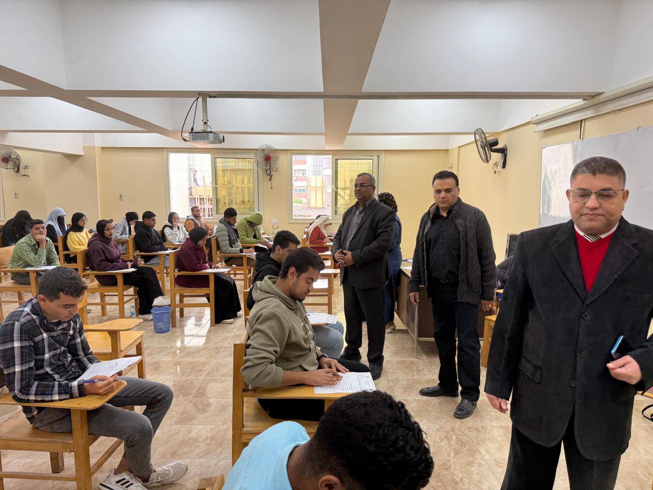 ورافق عميد الكلية خلال الجولة كلٌّ من الأستاذ الدكتور محمد عبد الصبور، مدير مكتب التدريب الميداني بالكلية، والدكتور أحمد الليثي، مدير وحدة الابتكار؛ حيث تابعوا آليات تنفيذ الاختبار، ومدى التزام الطلاب بالتعليمات المنظمة، وتحققهم من حسن سير اللجان بما يضمن تحقيق العدالة والانضباط الأكاديمي.
