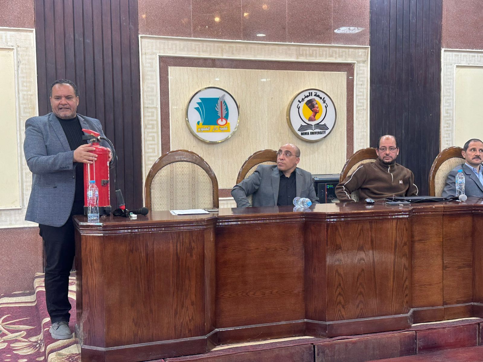 ومن جانبه، وجّه الأستاذ الدكتور مصطفى بيومي عبد السلام، عميد الكلية، خالص الشكر والتقدير للمحاضرين على ما قدّموه من مادة علمية وتطبيقية متميزة، تسهم في رفع الوعي بثقافة السلامة والصحة المهنية، كما أثنى على جهود وحدة ضمان الجودة ووحدة إدارة الأزمات في تنظيم هذه الندوة، مؤكدًا حرص الكلية على استمرار عقد مثل هذه الفعاليات التي تعزز بيئة تعليمية آمنة، وترتقي بمستوى الوعي لدى الطلاب ومنتسبي الكلية.